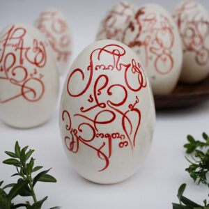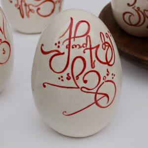 კერამიკის კვერცხი კალიგრაფიული წარწერით “ქრისტე აღდგა” საზედაო ასოთი.